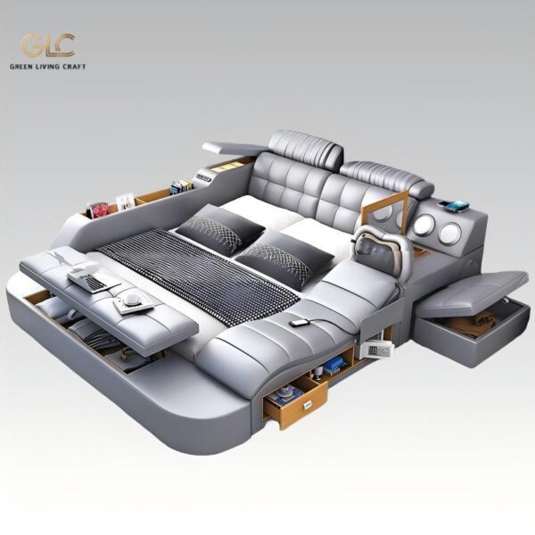 Multifunctional Smart Bed with Projector Modern Bed Massage Hydraulic Lift up Leather Bed King Size for Bedroom