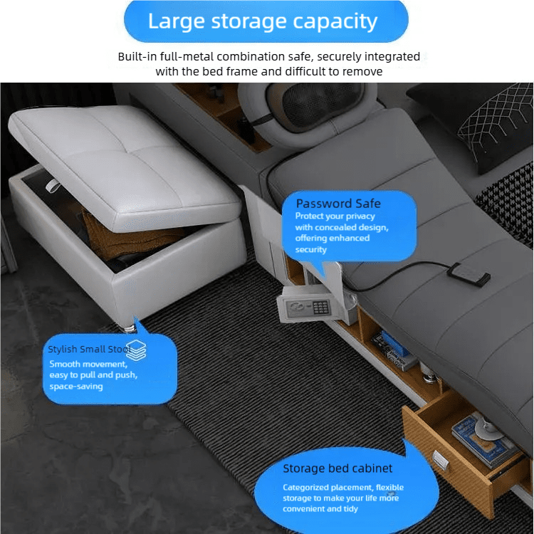 - Quality of Life: From massage to entertainment and secure storage, one bed supports healthier, happier daily habits.